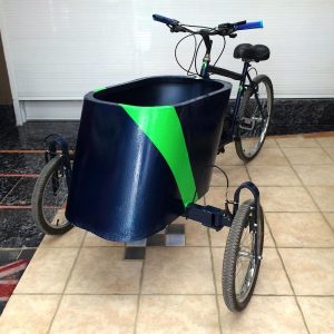 Green&Blue E-trike Handmade E-Trike With short basket From other angle Check the details Basket Inside Front wheels brakes A fantastic e-wheel